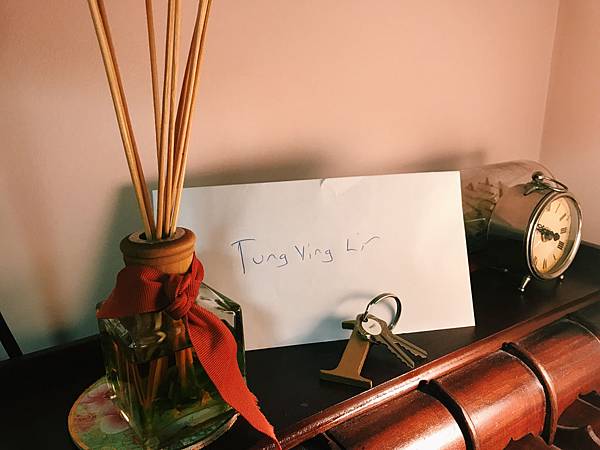 這間民宿是self check in的,管家會把鑰匙跟信放在信封裡,再把信封貼在大們,上面寫上名字,我很愛這種check in方式,因為很累了不用在那邊hi how are you. i'm fine, and you?